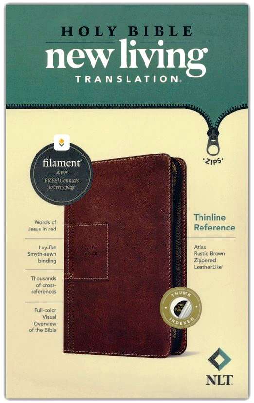 NLT – New Living Translation Thinline Reference: Atlas Rustic Brown Zippered Leather Like (ISBN:9781496466211)