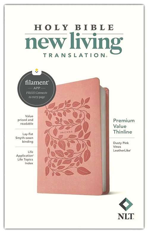 NLT Premium Value Thinline Bible: Dusty Pink Vines Leather Like (ISBN:978196484789)