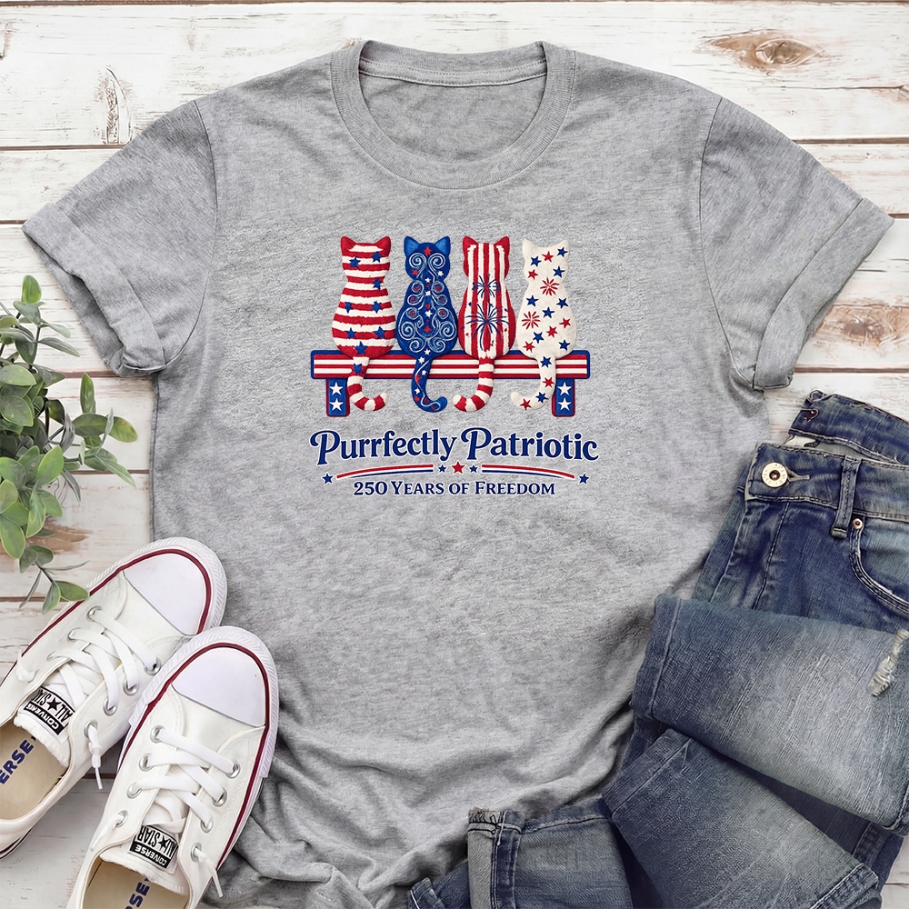 250 Years Of Freedom Purrfectly Patriotic Standard Tee Heather Grey